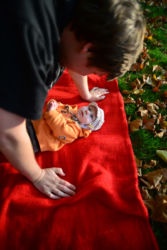 Jest jesień, to nowa pora roku, która zaskakuje mnie swoją zmiennością, raz jest ciepło i słonecznie, tak jak latem, a kiedy indziej zupełnie co innego i wieje straszny, nieprzyjemny wiatr. Mama powiedziała, że dzisiaj pogoda jest wiosenna, że ta cała wiosna to taka pora roku, której okazji nie miałem jeszcze poznać. Poszliśmy na błonie, gdzie rozłożyliśmy kocyk, poleżeliśmy, pobawiliśmy się, poczytaliśmy książkę. Mama znów patrzyła na mnie tym wielkim szklanym okiem, mówi, że to aparat, który tworzy pamiątki. Po południu dołączył do nas tata i wszyscy razem mogliśmy się pobawić na kocyku, porobiliśmy więcej pamiątek i wróciliśmy do domu. Był to wspaniały dzień, mam nadzieję, że jesień częściej będzie próbowała przypominać wiosnę!