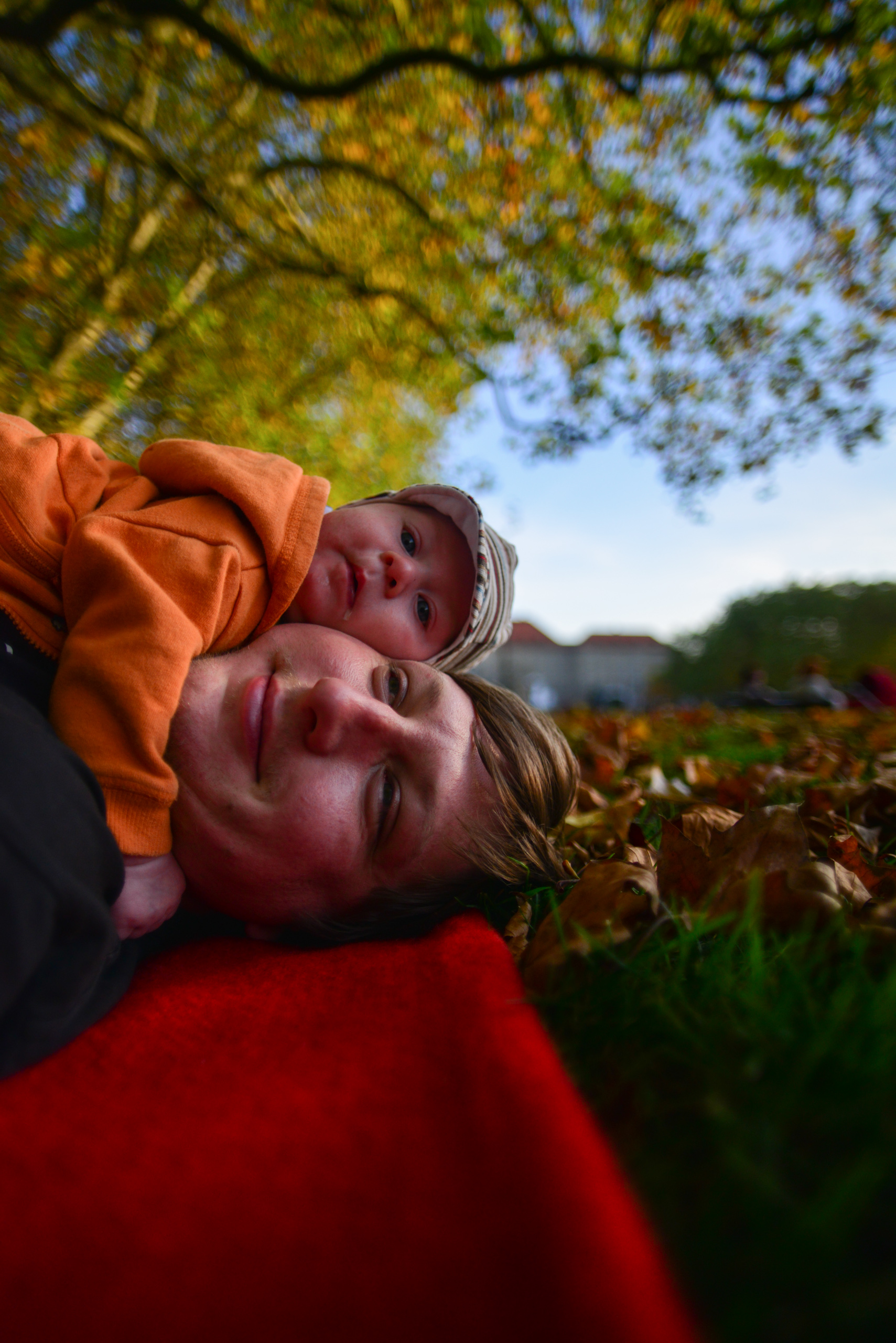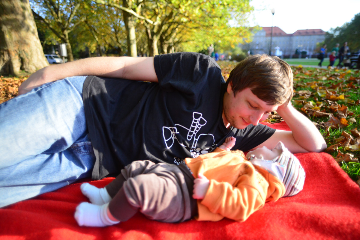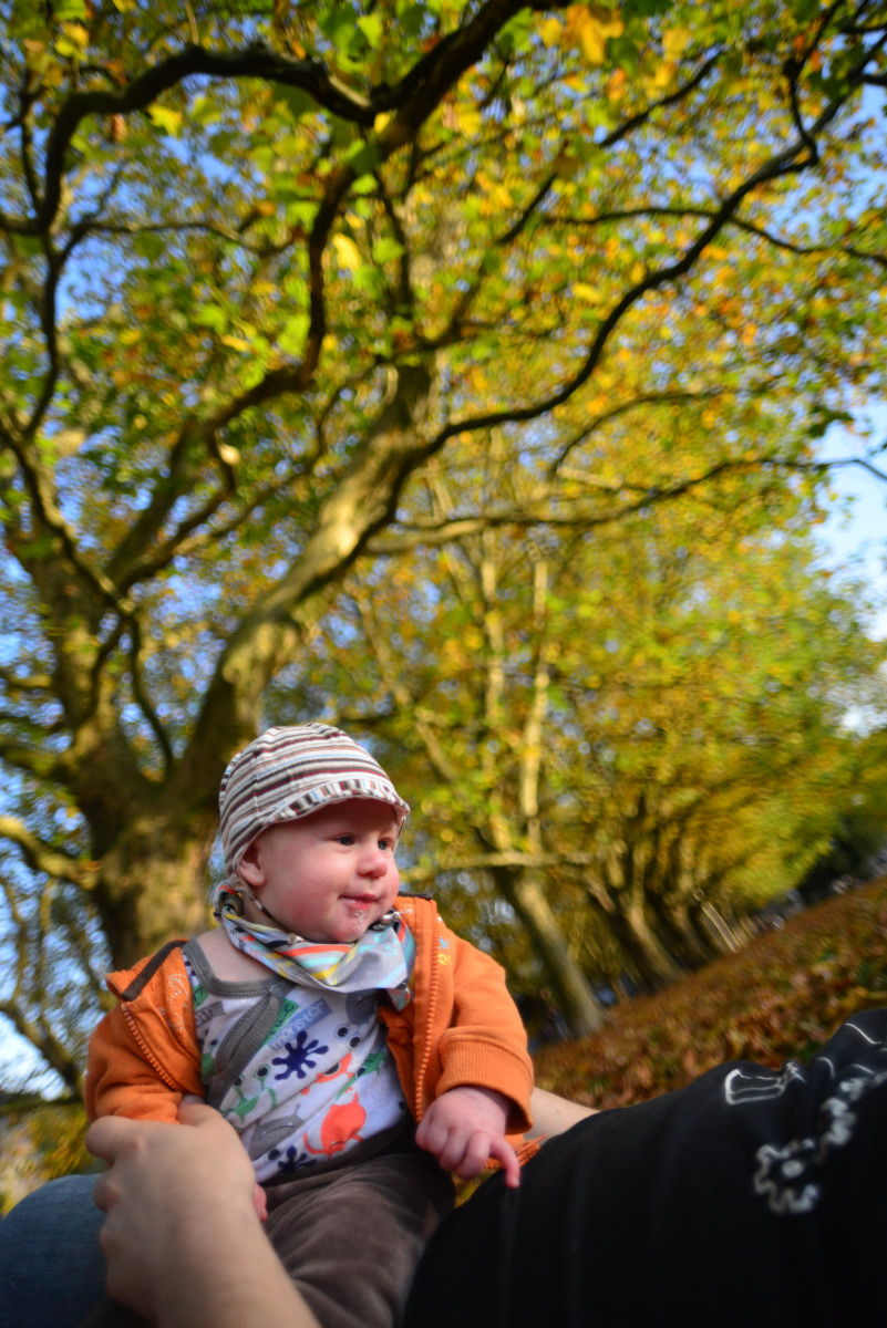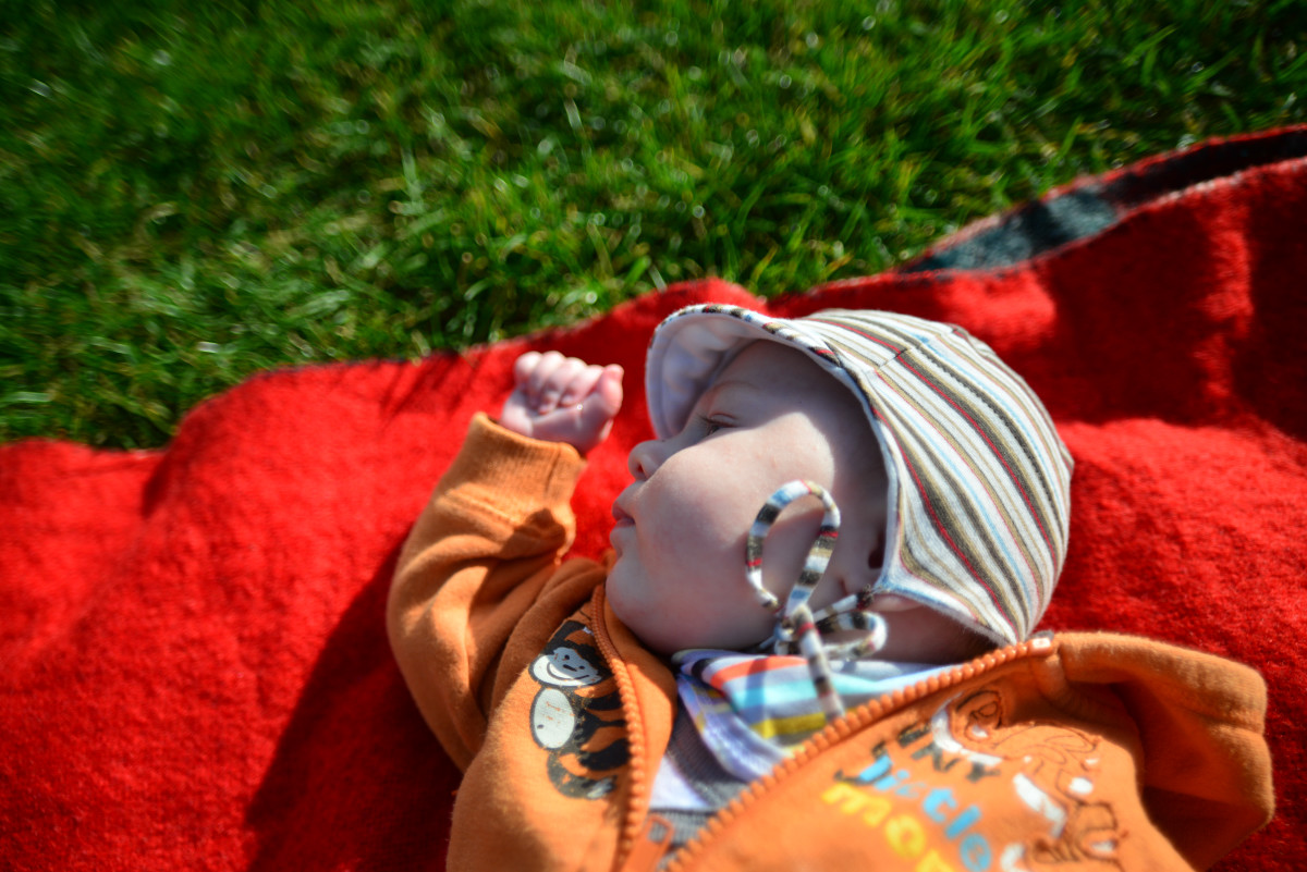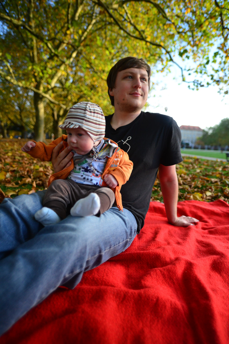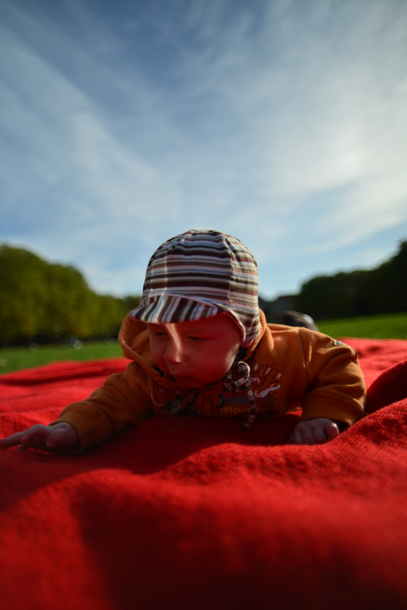 Jest jesień, to nowa pora roku, która zaskakuje mnie swoją zmiennością, raz jest ciepło i słonecznie, tak jak latem, a kiedy indziej zupełnie co innego i wieje straszny, nieprzyjemny wiatr. Mama powiedziała, że dzisiaj pogoda jest wiosenna, że ta cała wiosna to taka pora roku, której okazji nie miałem jeszcze poznać. Poszliśmy na błonie, gdzie rozłożyliśmy kocyk, poleżeliśmy, pobawiliśmy się, poczytaliśmy książkę. Mama znów patrzyła na mnie tym wielkim szklanym okiem, mówi, że to aparat, który tworzy pamiątki. Po południu dołączył do nas tata i wszyscy razem mogliśmy się pobawić na kocyku, porobiliśmy więcej pamiątek i wróciliśmy do domu. Był to wspaniały dzień, mam nadzieję, że jesień częściej będzie próbowała przypominać wiosnę!