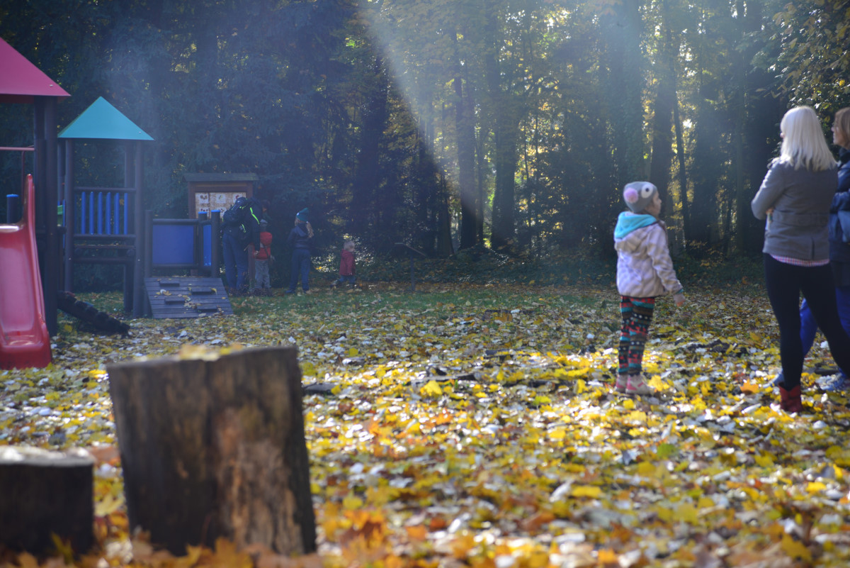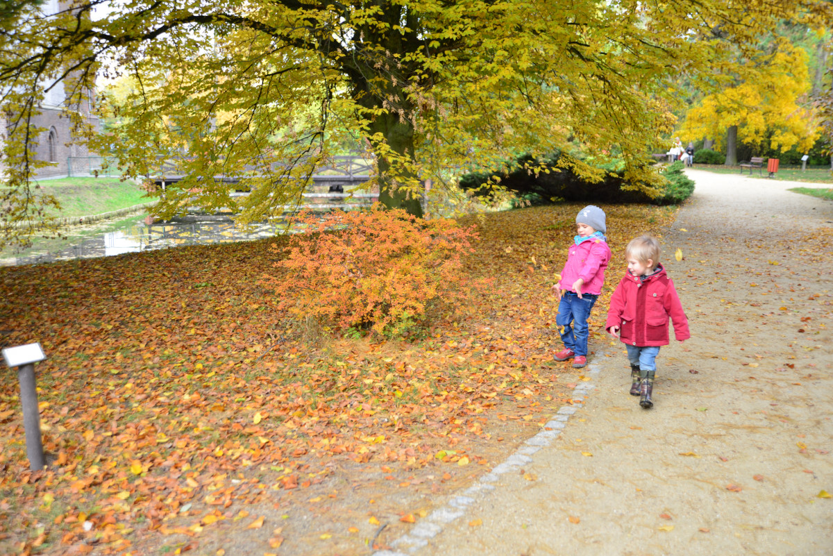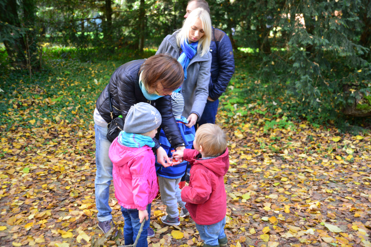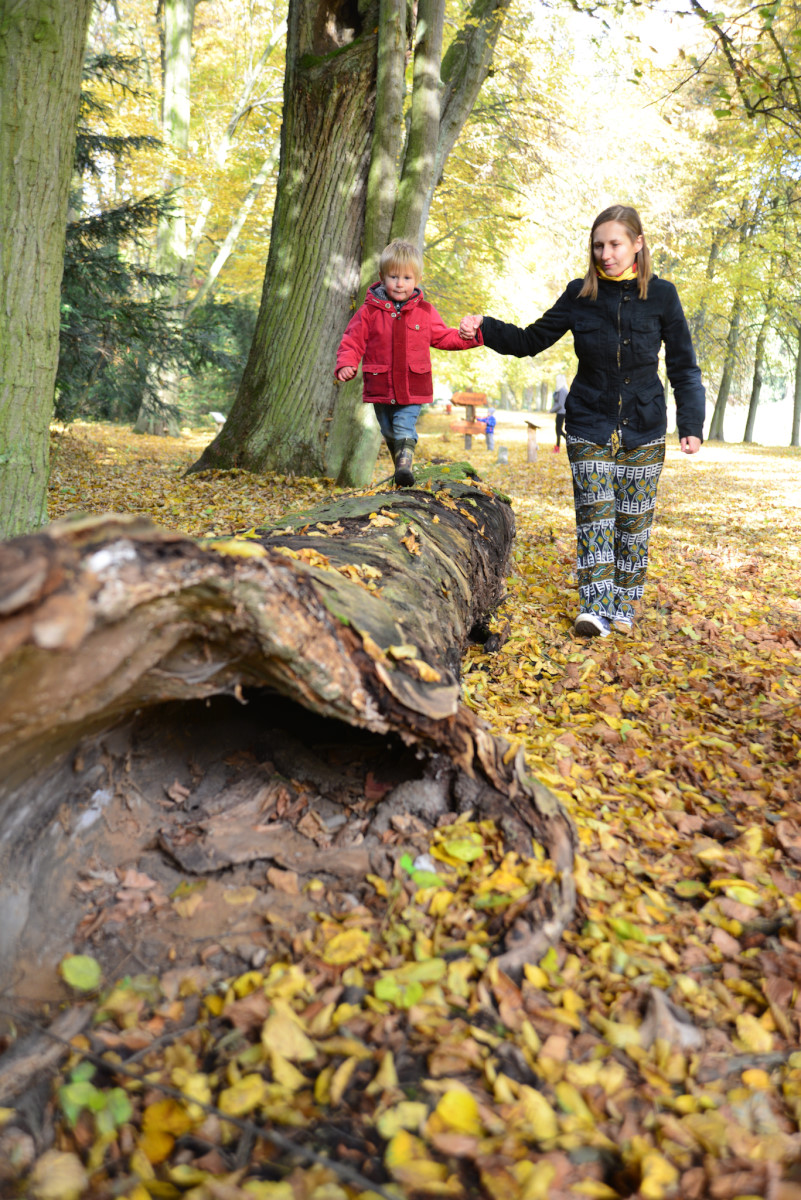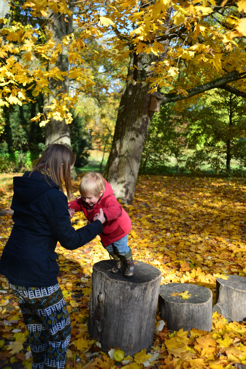 Zabraliśmy Illugi i Totoro do Mamasitas, meksykańskiej restauracji. Totoro ze wszystkiego co można tam było znaleźć upodobał sobie ceramiczną krowę bez jednego ucha, przecież to takie „meksykańskie”. Jedzenie smakowało wszystkim, a obsługa bardzo przyjazna, myślę, że tam wrócimy. Mieliśmy również okazję wybrać się na pierwszy rajd organizowany przez żłobek. Plan obejmował zwiedzanie makiety pociągów w Borówiec oraz spacer po arboretum w Kórniku. Makieta była duża i bardzo szczegółowa, można tam spędzić na prawdę bardzo dużo czasu analizując każdy detal. Totoro upodobał sobie plastikowy stopień, który ciągał za sobą w każde miejsce i przyklejał się do szyby jak mały glonojad. Potem zapakowaliśmy się do aut i ruszyliśmy do Kórnika. Tam miły właściciel baru pozwolił zjeść u siebie rosół, który zorganizowała Pani dyrektorka i wyruszyliśmy do arboretum. Pogoda dopisała, bardzo piękna i słoneczna jesień, a park przepiękny. Myślę, że odwiedzimy go raz jeszcze w kwietniu/maju kiedy przypada okres kwitnięcia magnolii, podobno jest przepięknie.