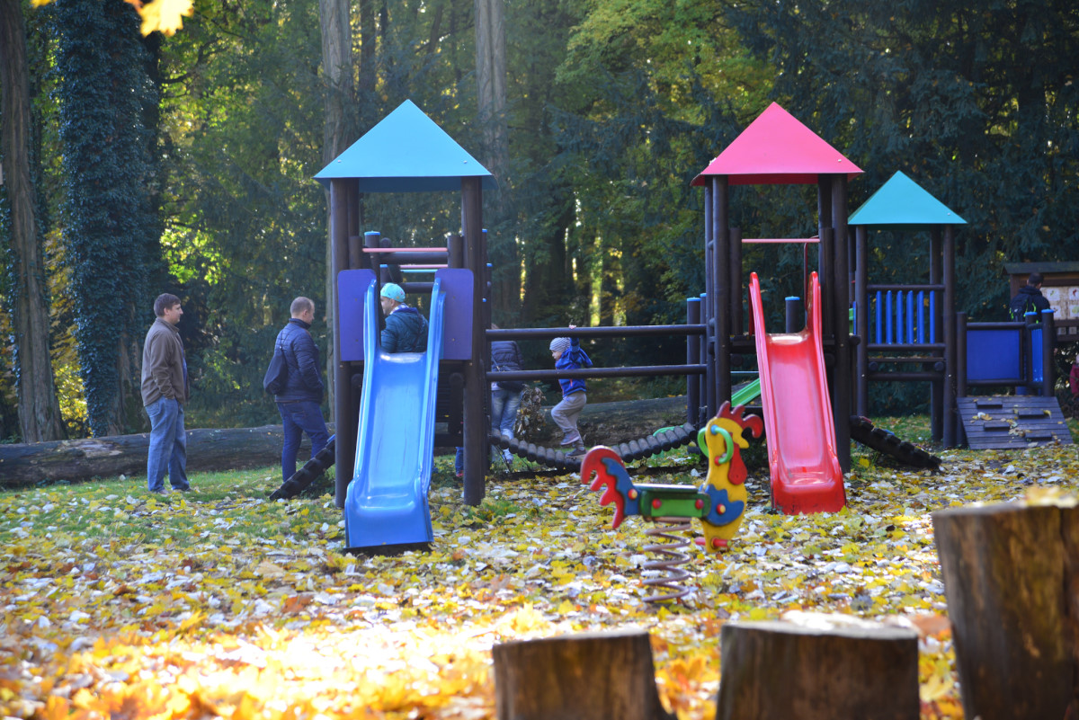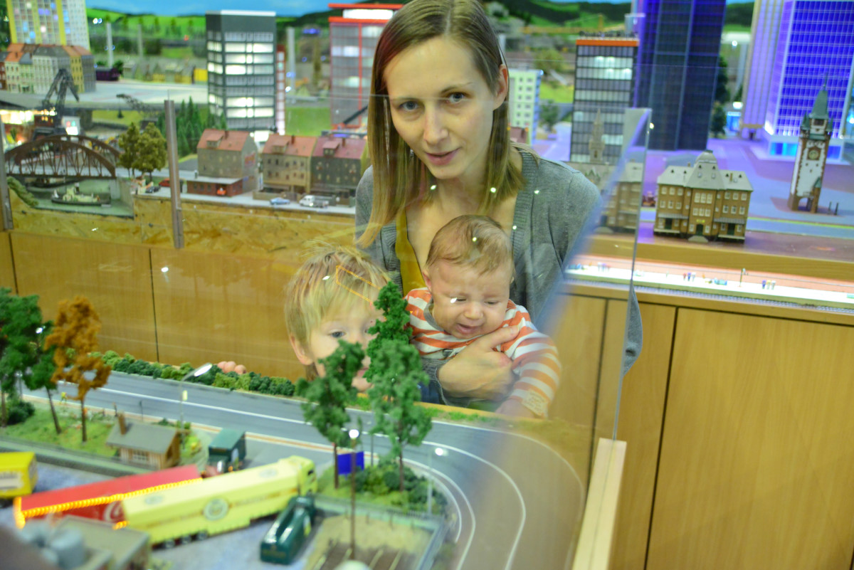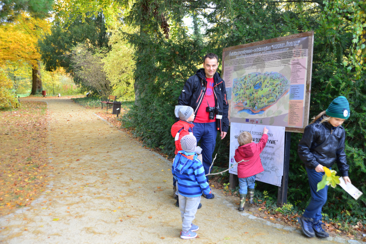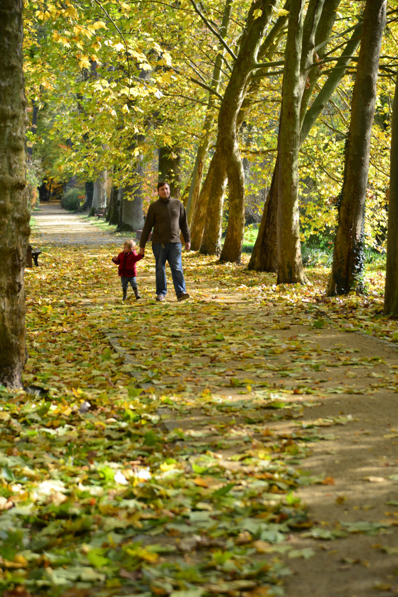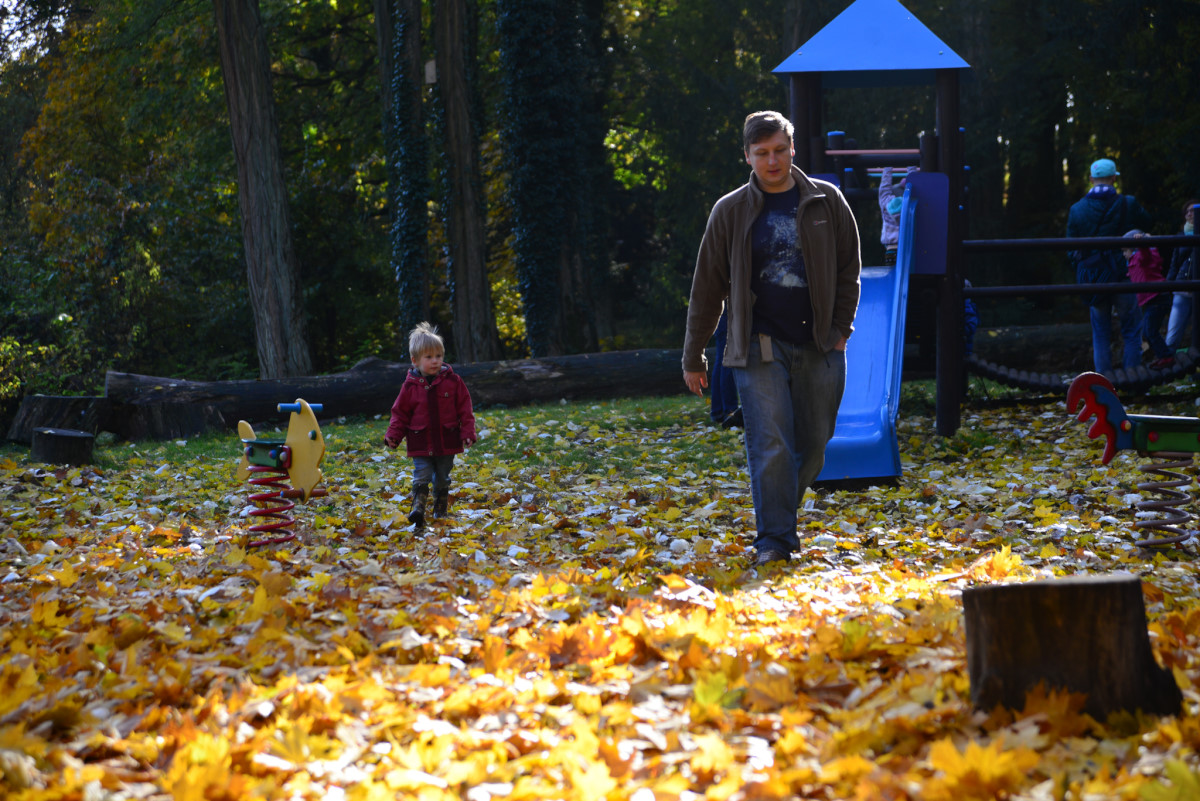 Zabraliśmy Illugi i Totoro do Mamasitas, meksykańskiej restauracji. Totoro ze wszystkiego co można tam było znaleźć upodobał sobie ceramiczną krowę bez jednego ucha, przecież to takie „meksykańskie”. Jedzenie smakowało wszystkim, a obsługa bardzo przyjazna, myślę, że tam wrócimy. Mieliśmy również okazję wybrać się na pierwszy rajd organizowany przez żłobek. Plan obejmował zwiedzanie makiety pociągów w Borówiec oraz spacer po arboretum w Kórniku. Makieta była duża i bardzo szczegółowa, można tam spędzić na prawdę bardzo dużo czasu analizując każdy detal. Totoro upodobał sobie plastikowy stopień, który ciągał za sobą w każde miejsce i przyklejał się do szyby jak mały glonojad. Potem zapakowaliśmy się do aut i ruszyliśmy do Kórnika. Tam miły właściciel baru pozwolił zjeść u siebie rosół, który zorganizowała Pani dyrektorka i wyruszyliśmy do arboretum. Pogoda dopisała, bardzo piękna i słoneczna jesień, a park przepiękny. Myślę, że odwiedzimy go raz jeszcze w kwietniu/maju kiedy przypada okres kwitnięcia magnolii, podobno jest przepięknie.